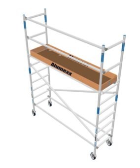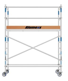 ALX Rolsteiger 75 x 190 x 4.2 wh is een smalle basic rolsteiger met een frame breedte van 75 cm en een vloerlengte van 190 cm. Binnen vijf minuten bereik je hiermee een werkhoogte van 4,2 m en zo snel breek je hem ook weer af. Deze aluminium rolsteiger heeft een buisomtrek van mm en een wanddikte van 2,2 mm. Hierdoor heeft hij een lange levensduur en zijn ze veilig te gebruiken voor doe-het-zelvers en professionals. Hij voldoet aan de Nederlandse Warenwet, maar niet aan de NEN-EN 1004. Vind je dit wel belangrijk? Dan bestel je eenvoudig extra onderdelen bij. Ook onderdelen van merken als ASC, Altrex en Euroscaffold passen op deze ALX Rolsteiger 75 x 190 x 4.2 wh.