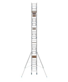 De ASC Rolsteiger 75 x 250 x 10.2 wh bouw je met de door ons geselecteerde opbouwframes, kopleuningen, platformen, schoren, kantplanken, wielen en borgclips. Voor je je bestelling plaatst, pas je de geselecteerde onderdelen eenvoudig aan om de aluminium steiger nog beter op je werk aan te laten sluiten. Kies bijvoorbeeld voor andere wielen met een zwaarder draagvermogen als dat nodig is of ga voor een upgrade naar carbon platforms om de steiger nóg lichter te maken. Deze smalle rolsteiger is ideaal voor verschillende (af)bouw-, installatie- en onderhoudsklussen.