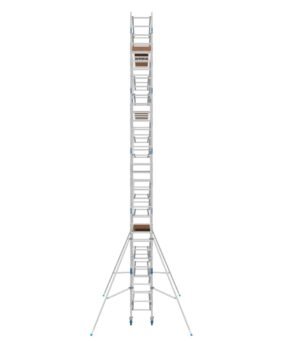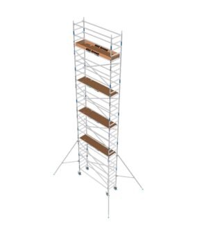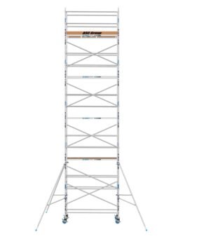 De ASC Rolsteiger 75 x 305 x 11.2 wh bouw je met de door ons geselecteerde opbouwframes, kopleuningen, platformen, schoren, kantplanken, wielen en borgclips. Voor je je bestelling plaatst, pas je de geselecteerde onderdelen eenvoudig aan om de aluminium steiger nog beter op je werk aan te laten sluiten. Kies bijvoorbeeld voor andere wielen met een zwaarder draagvermogen als dat nodig is of ga voor een upgrade naar carbon platforms om de steiger nóg lichter te maken. Deze smalle rolsteiger is ideaal voor verschillende (af)bouw-, installatie- en onderhoudsklussen.