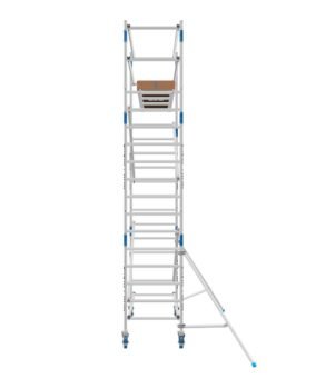 De ASC Rolsteiger 90 x 190 x 6.2 wh ZN, gefabriceerd uit hoogwaardig aluminium, staat garant voor topkwaliteit en is geschikt voor zowel de doe-het-zelver als de professional. De steiger bestaat uit verschillende onderdelen, waaronder opbouwframes, kopleuningen, diagonale en horizontale schoren, platformen, een kantplankset en wielen. Maak zelf de keuze uit de onderdelen en vind op deze manier een volledig op maat gemaakte oplossing voor jouw projecten.