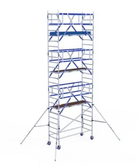 Maak ASC Rolsteiger 90 x 250 x 8.2 wh + tweezijdige voorloopleuning op maat door de best passende onderdelen te kiezen. Zo kun je bijvoorbeeld kiezen voor de standaard ASC verankering, maar ook voor fast-click systeem. Wil je een extra lichte rolsteiger realiseren? Vervang dan de houten platformen voor lichtgewicht carbon. Zo past jouw vrijstaande aluminium rolsteiger altijd perfect bij jouw (af)bouw-, installatie- of onderhoudsklus.